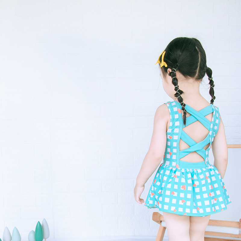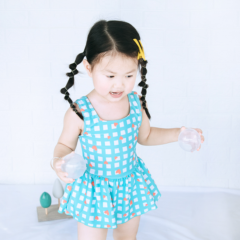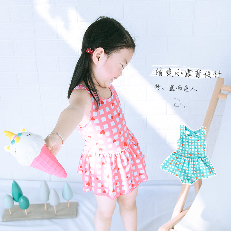 Children's swimsuit Girls princess skirt Plaid halter one-piece cute swimsuit 2021 primary school student foreign style swimsuit