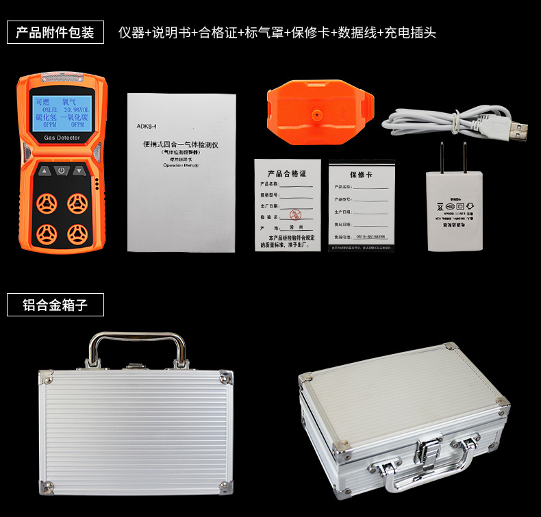 Four-in-one gas detector hydrogen sulfide detector carbon monoxide detector oxygen detector combustible gas detector gas sampling pump