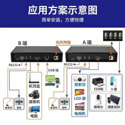 Multifunctional dp1 2 fiber optic extender 4K HD kvm optical transceiver two-way audio rs232 data 4-way usb2 0 support wireless keyboard mouse flash disc ukey printer