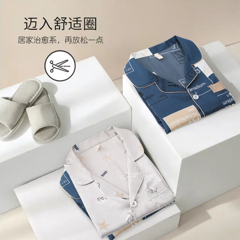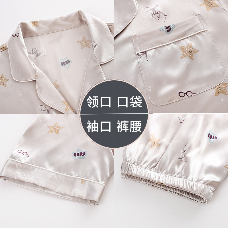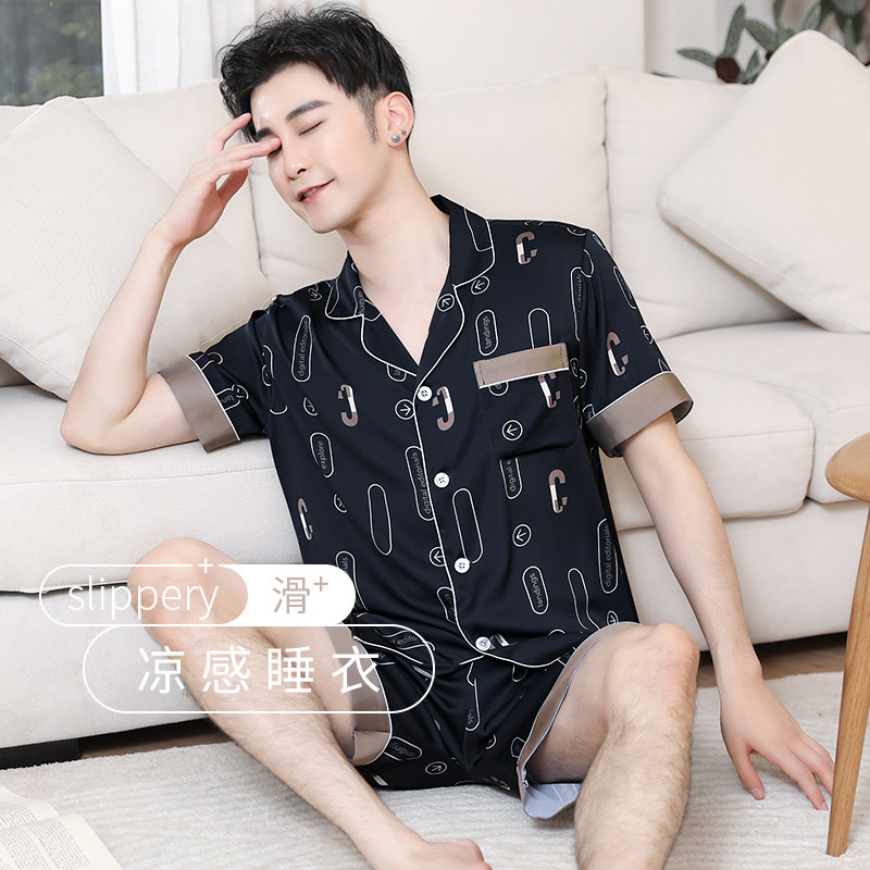Shangzhi pajamas men's summer ice silk thin short-sleeved shorts suit Simulation silk cardigan loose spring and Autumn home clothes
