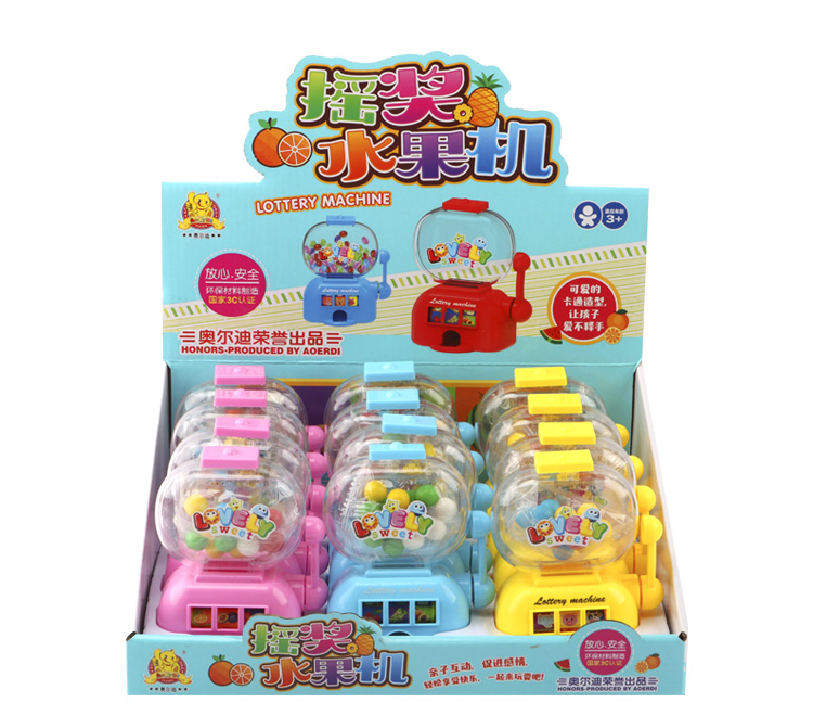 Creative cartoon toy candy basket machine Kids love to play manual lottery fruit machine Sugar machine snacks