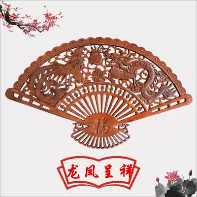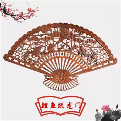 Wood carving pendant solid wood 1 m carving porch partition Chinese decoration camphor wood fan wall hanging living room decoration painting