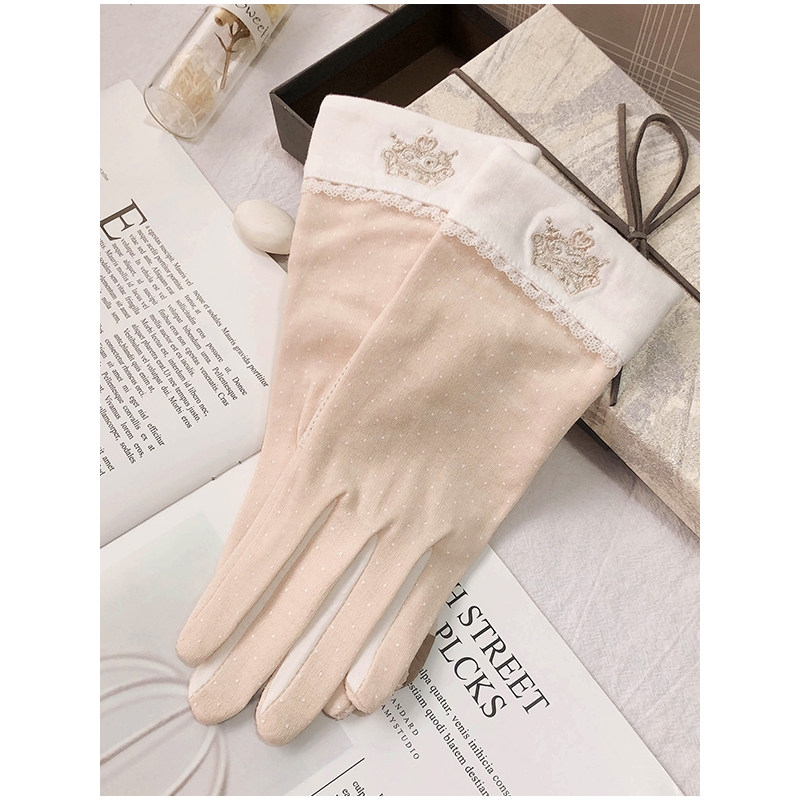 Gloves Ladies Thin short summer spring autumn season stickers for electric cars Driving non-slip cute elastic cotton touch screen sunscreen