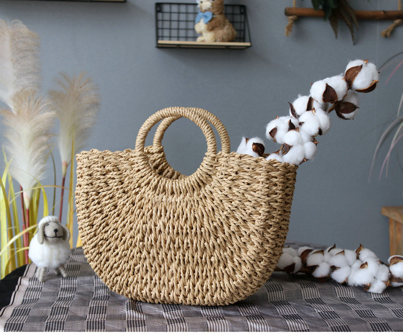 Natural handmade woven handbag Grass woven with storage bag Handmade basket inclined satchel handbag Handbag Gift Bag