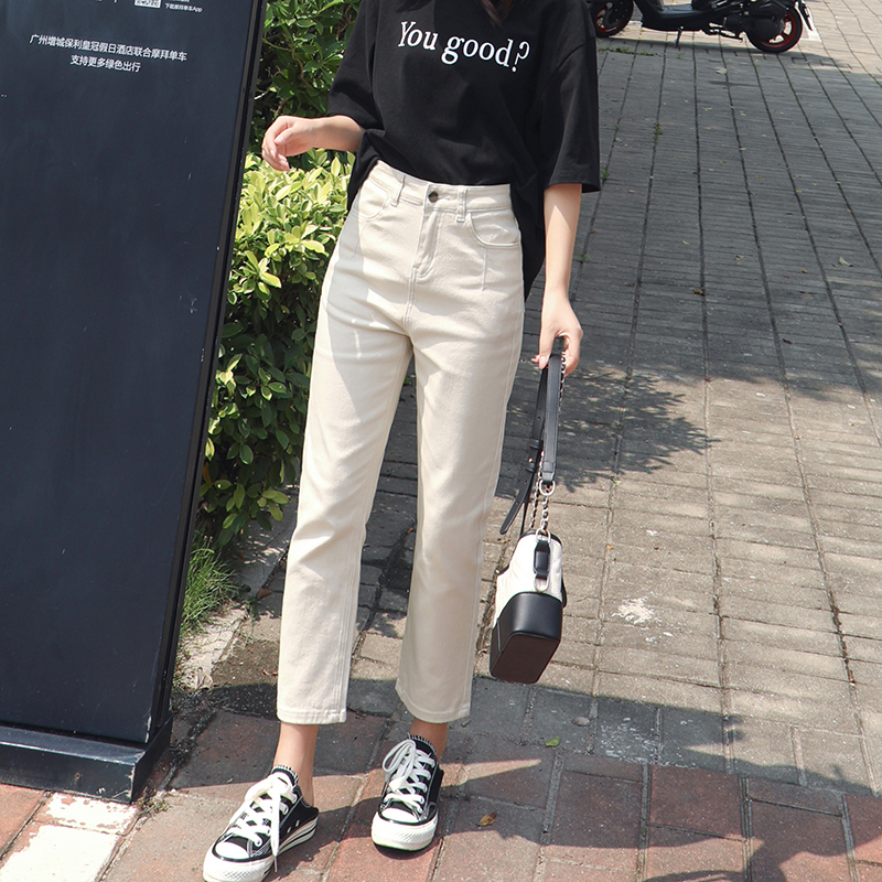 Beige apricot high-waisted jeans women's summer 2021 new loose straight nine points thin cigarette tube pants thin section