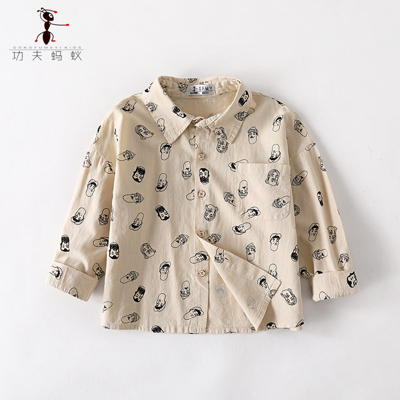 Kung Fu ants Japanese boys long-sleeved shirts for children in children's loose thin tops baby inch shirts 4017