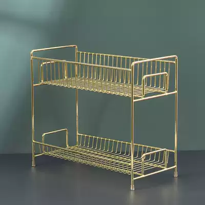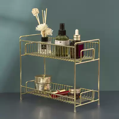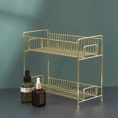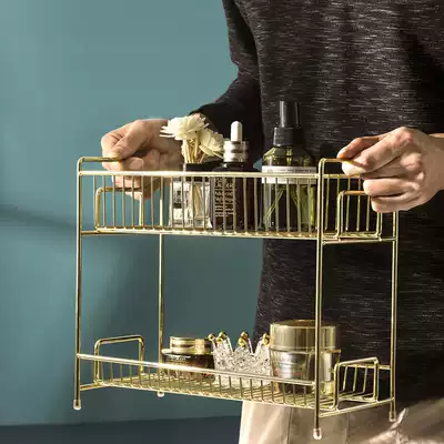 Nordic gold bathroom rack double-layer desktop skin care products cosmetics storage layer rack metal wash table storage box