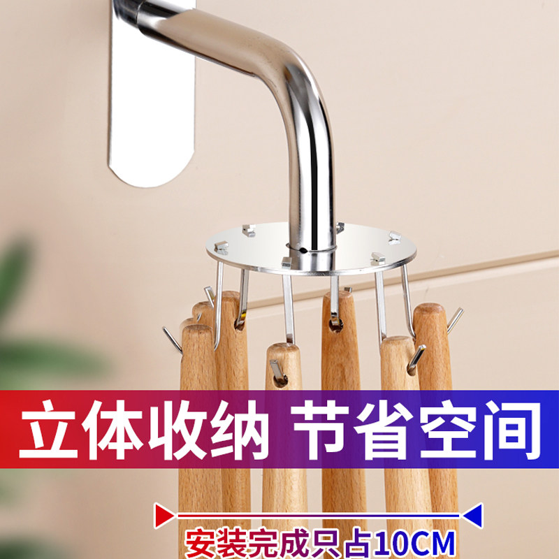 Punch-free spoon spatula storage shelf kitchen rotating hook wall hanging kitchenware supplies hanger pole artifact