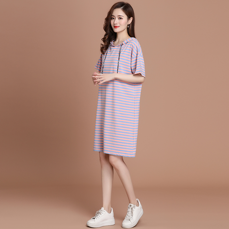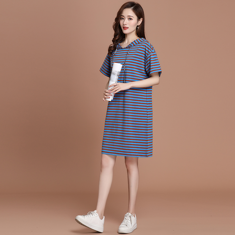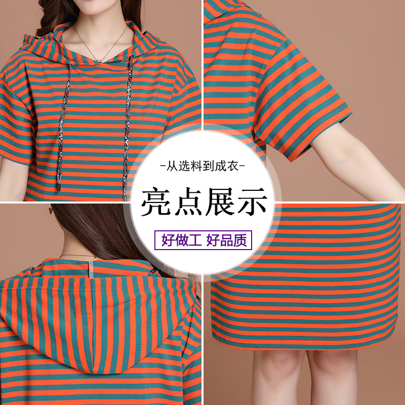 Striped short sleeve T-shirt woman dress pure cotton 2022 new summer T-shirt Lions sports shirt casual foreign dress in long version