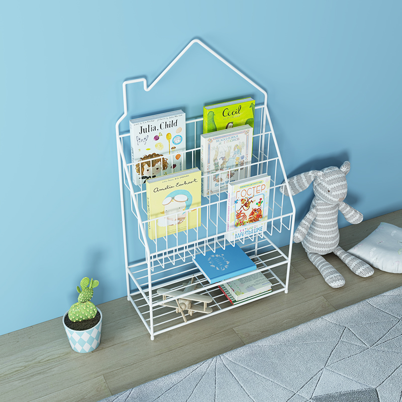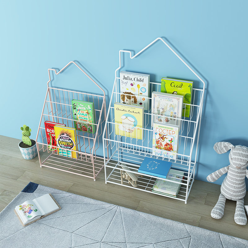 Children's bookshelf floor-to-ceiling simple newspaper rack baby picture book storage layer rack wrought iron magazine rack display bookcase rack