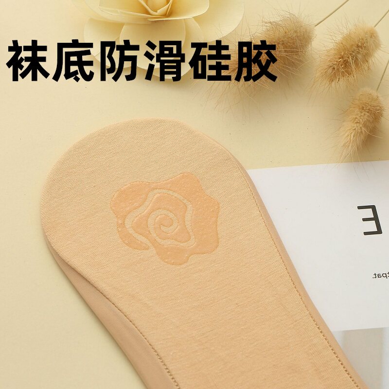 Ice silk steady invisible socks women's cotton bottom shallow mouth silicone do not fall slip socks summer thin single shoes socks women's socks