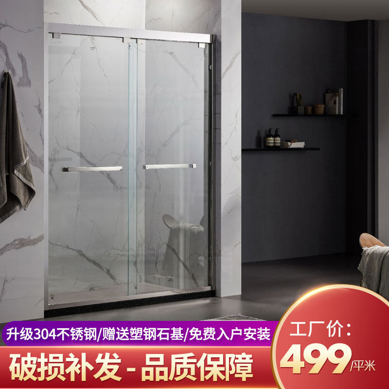 One-line shower room partition tempered glass door custom bathroom dry and wet separation partition simple-shaped shower room