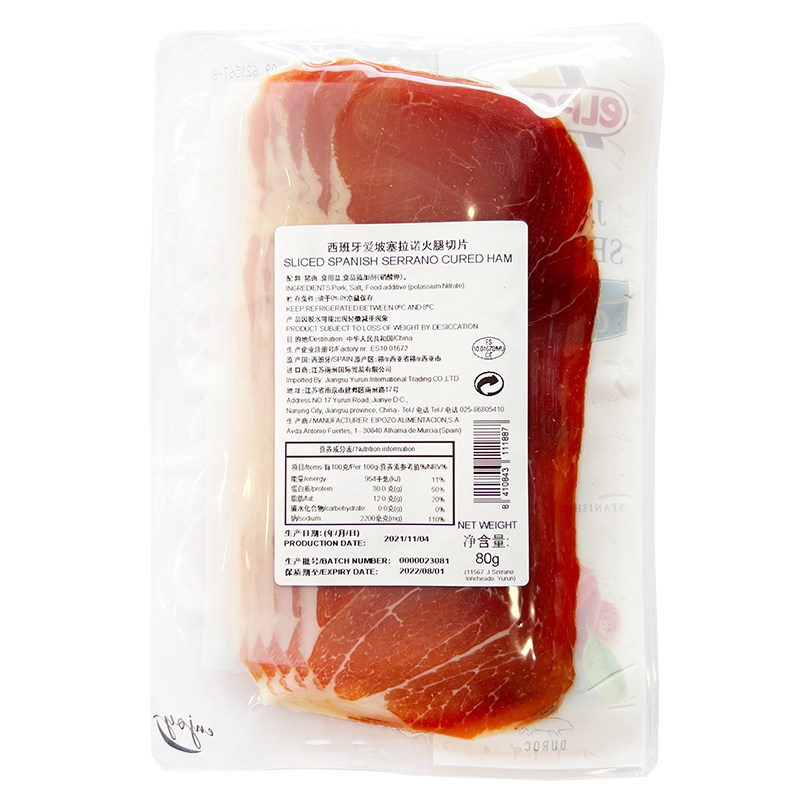 Elpozo love slopes Serrano ham sliced 80g raw to eat ready-to-eat dried Spanish fire leg slices Western food pork