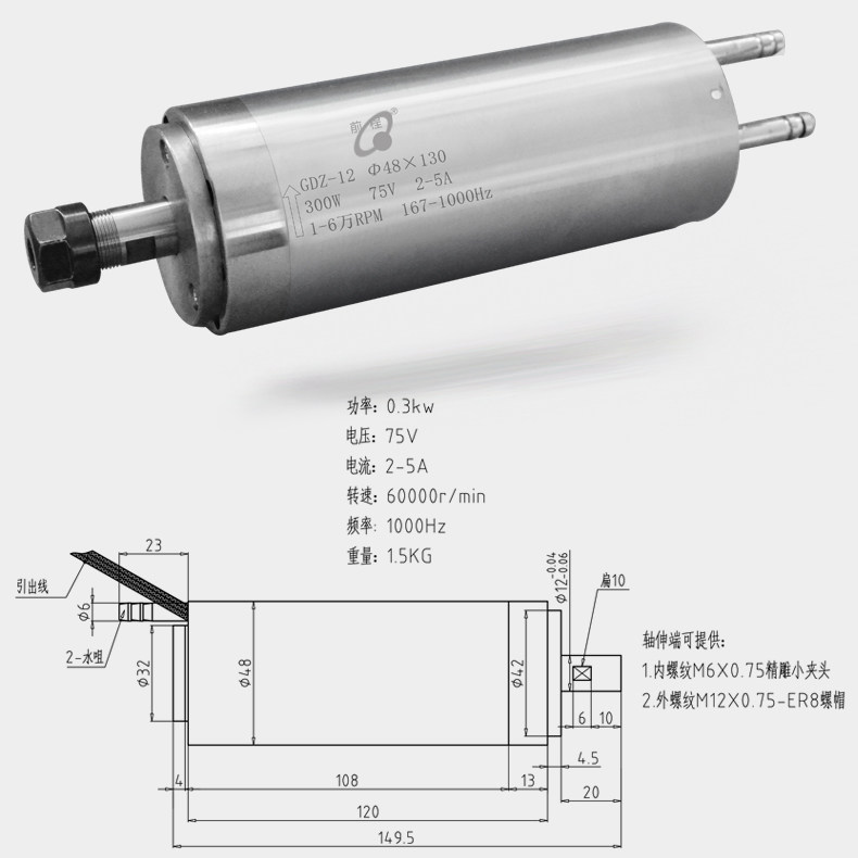 Engraving machine GDZ-12 electric spindle 300W60000 turning diameter 48mm High rev PCB drilling precision engraving machine motor