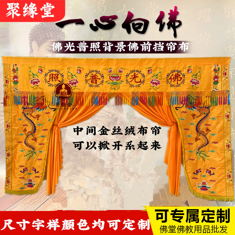 Buddha statue curtain curtain god tent Buddha shrine curtain Buddha cloth Buddha light illumination dragon gate dragon tent Buddha hall decorative background wall cloth 2m