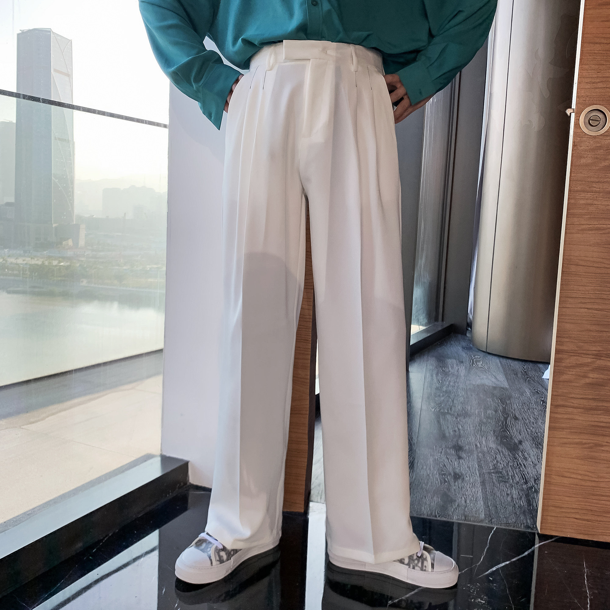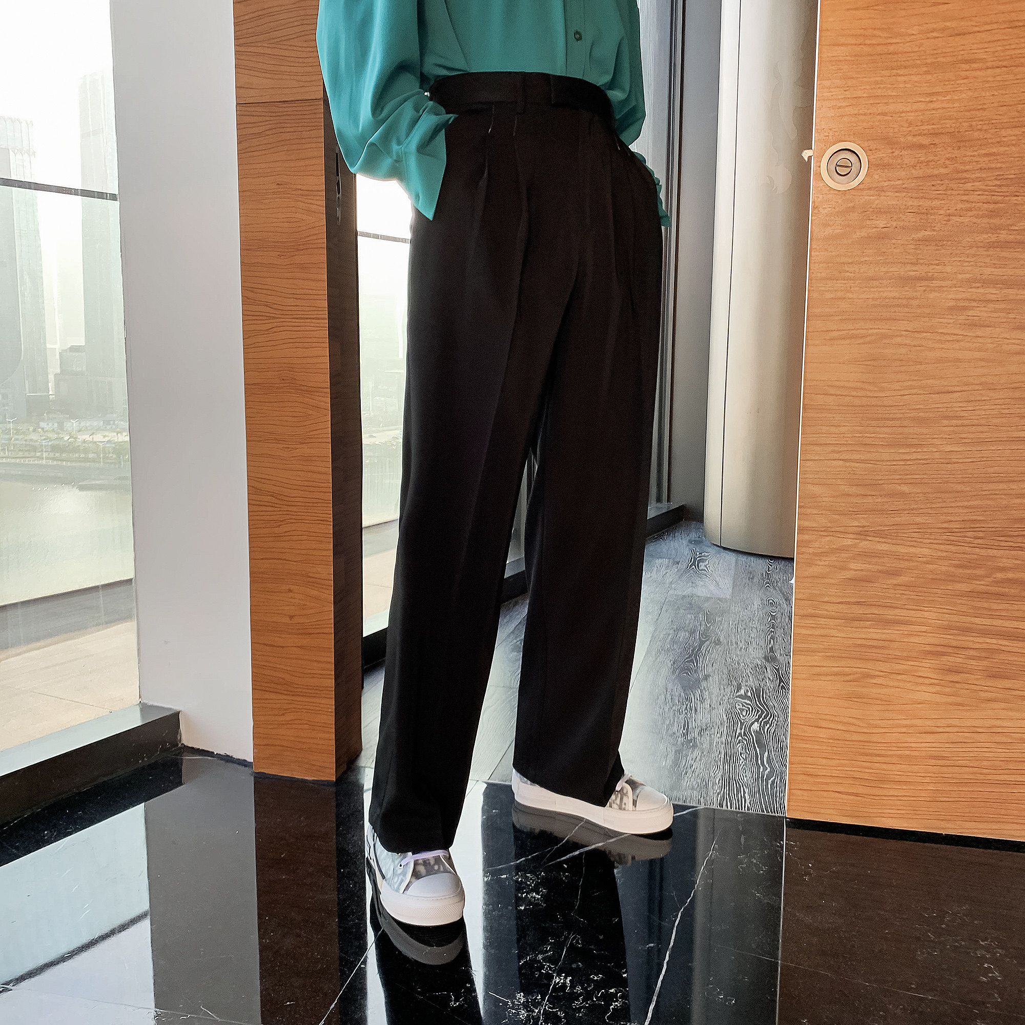 (VERA MENS) Korean style ins black pants men's long-sleeved trousers loose drape casual spring trousers