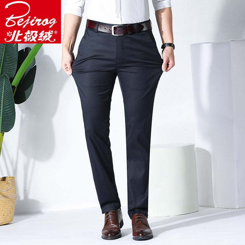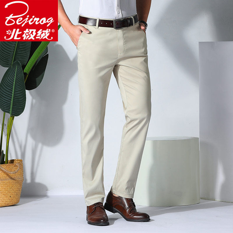 Arctic velvet spring and summer casual pants men's straight pants thin elastic long pants loose and versatile business trousers men
