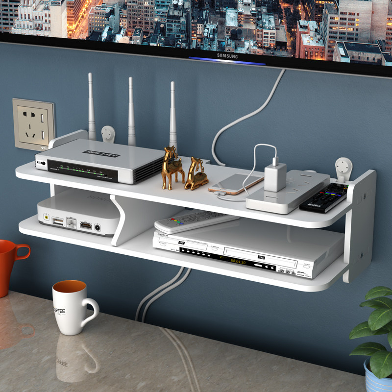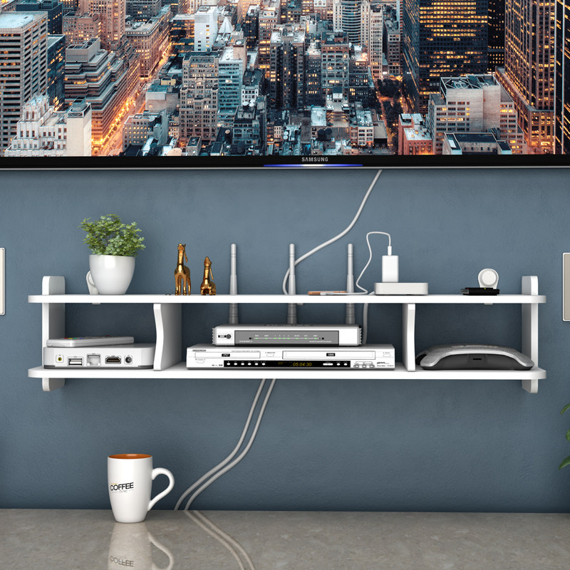 Living room TV wall Set-top box rack shelf Router storage box Wall-mounted decorative partition Bedroom free of holes