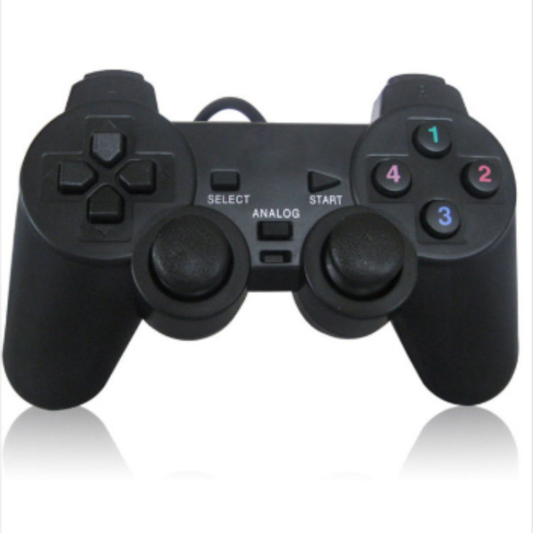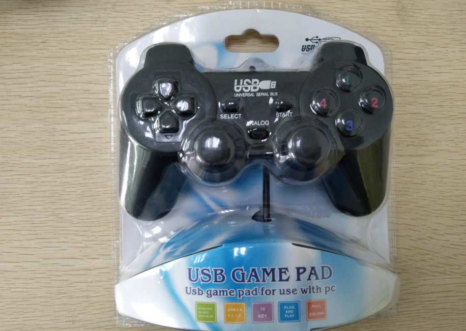 208USB black wired handle PS2 shape game handle PC computer vibration handle with packaging