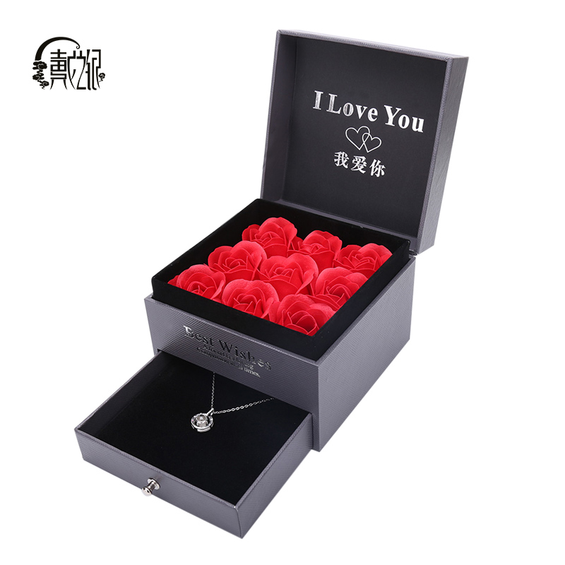 Rose Flower Gift Box Packaging Necklace Packaging Double mount Red Valentine's Day Rose Gift Upscale Containing Box