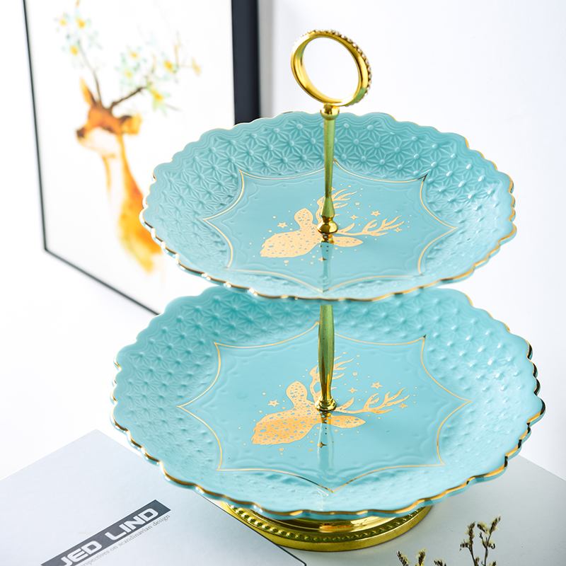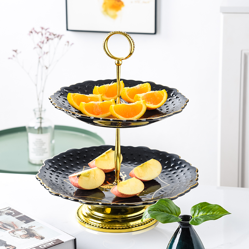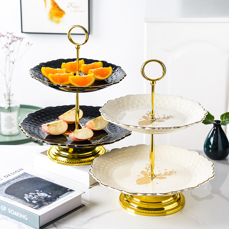 Welfare ceramic double-layer fruit plate modern creative American dried fruit plate living room coffee table decoration light luxury model room soft decoration