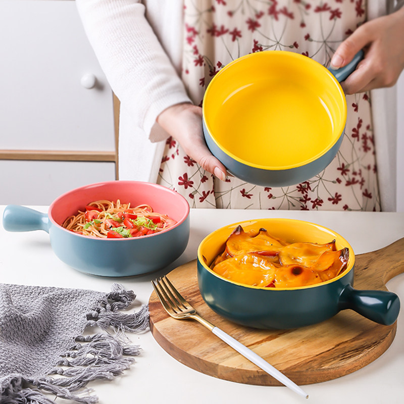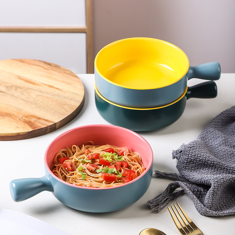 Two-color handle round bowl-green yellow blue powder (2 pieces) two-color handle round bowl-blue yellow blue powder (2 pieces) single handle bowl pink yellow (2 pieces) two-color handle round bowl-blue yellow