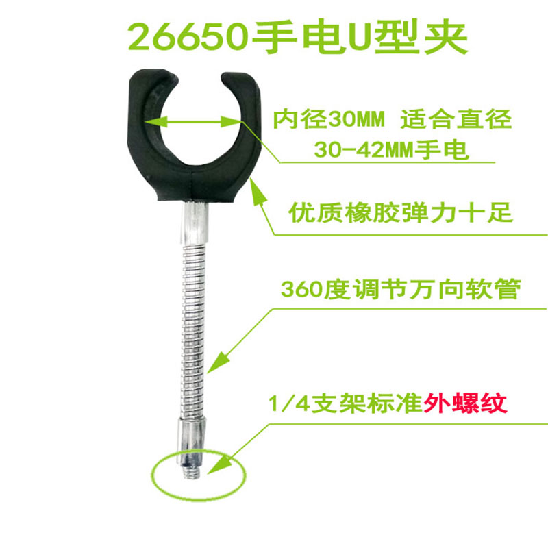 26650LED strong light flashlight universal metal hose U clip fishing light flashlight universal bracket plugged into the ground