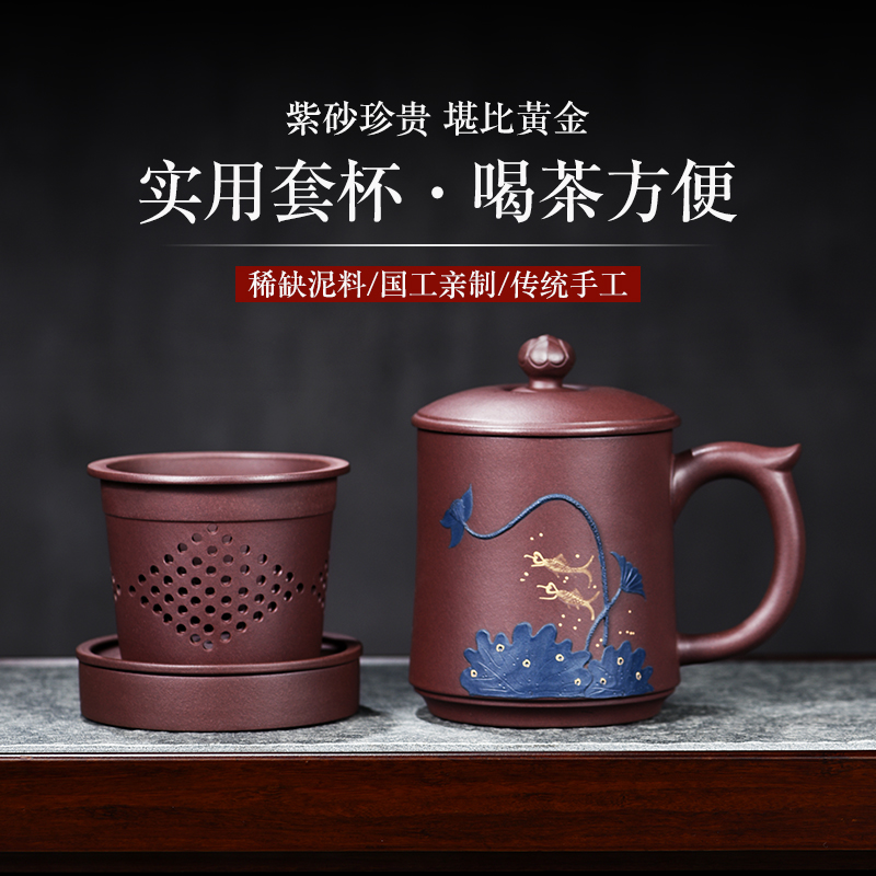 Lixing Purple Sand Cup Lady Pure Artisanal Tea Cup Boutique Original Mine Upscale Tea Water Separation Liner Filter Clay Drawing Cover Cup