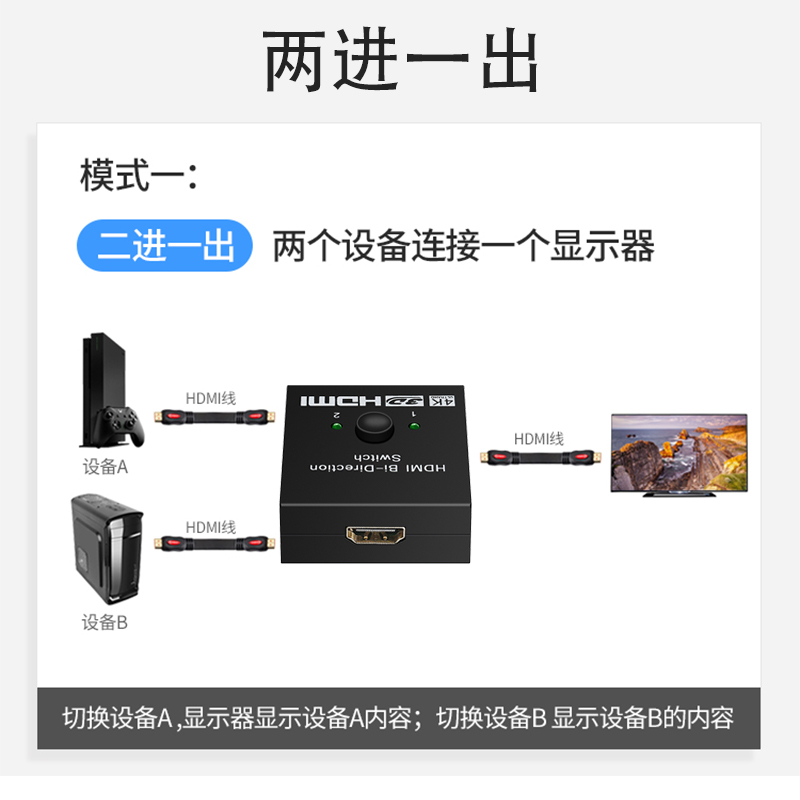 HD Video HDMI Two-in one-out Switcher HDMI Distributor Bidirectional HDMI Switcher Supports 4K