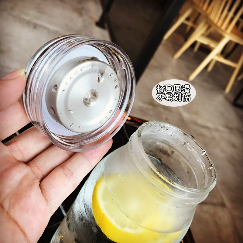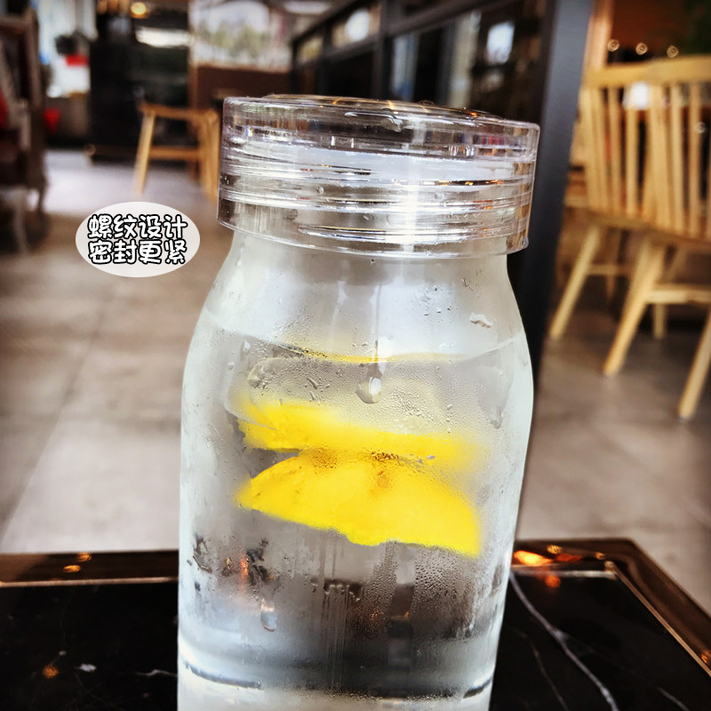 Han-style minimalist transparent monolayer thickened heat resistant glass water bottle men and women portable small fresh lemon bubble tea water mug