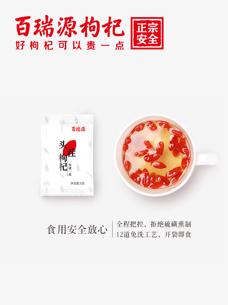 100 Ruiyuan 210g Ningxia Zhongnining Stubble Head Stubble Wolfberry Free Wash Large Grain Red Wolfberry Bubble Wine Small Bag Tea