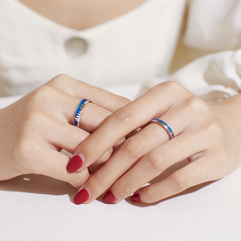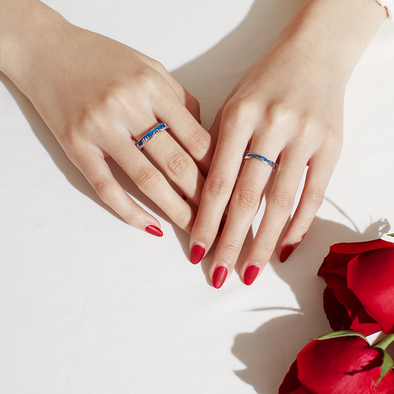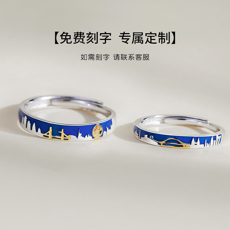 Long-distance love pair ring ring sterling silver one couple ring simple student couple style niche design original engraving live mouth
