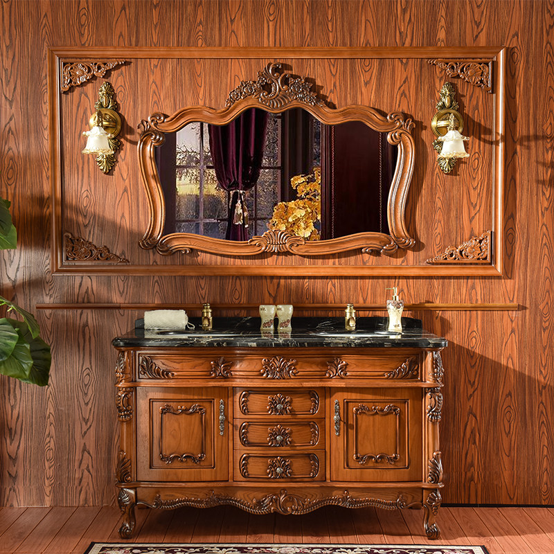 European bathroom cabinet red oak floor bath cabinet combination antique sink dressing room solid wood double groove washbasin washbasin
