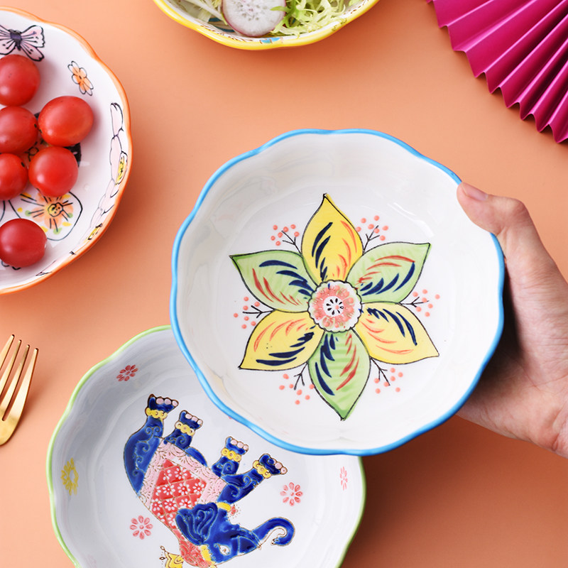 6-inch pure hand-painted Thai elephant salad bowl 6-inch pure hand-painted large flower salad bowl 6-inch pure hand-painted small flower salad bowl 6-inch pure hand-painted butterfly salad bowl