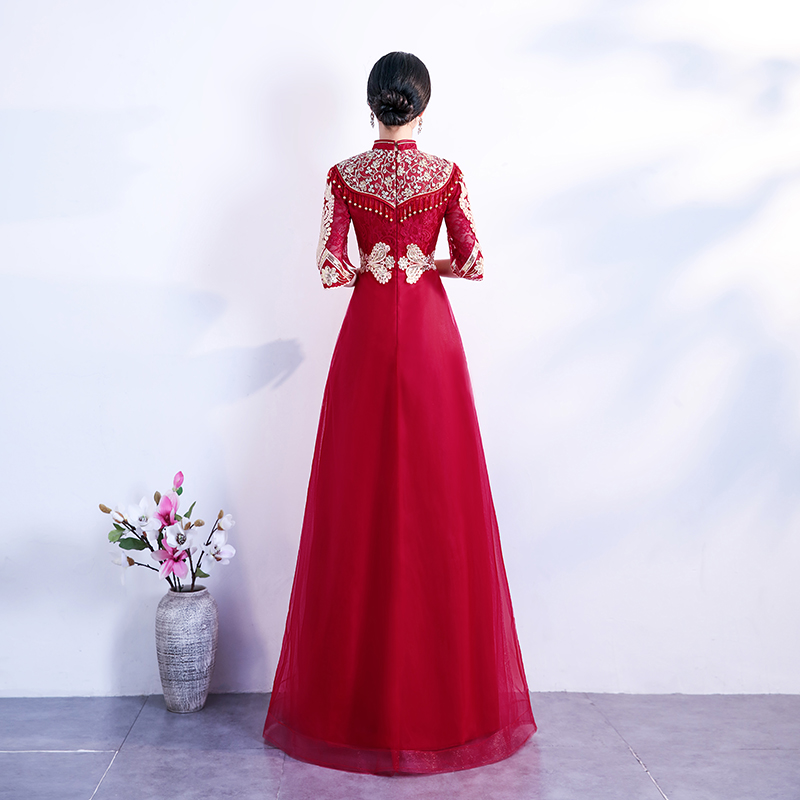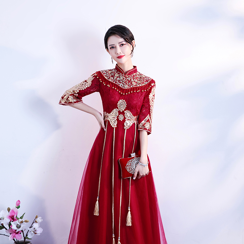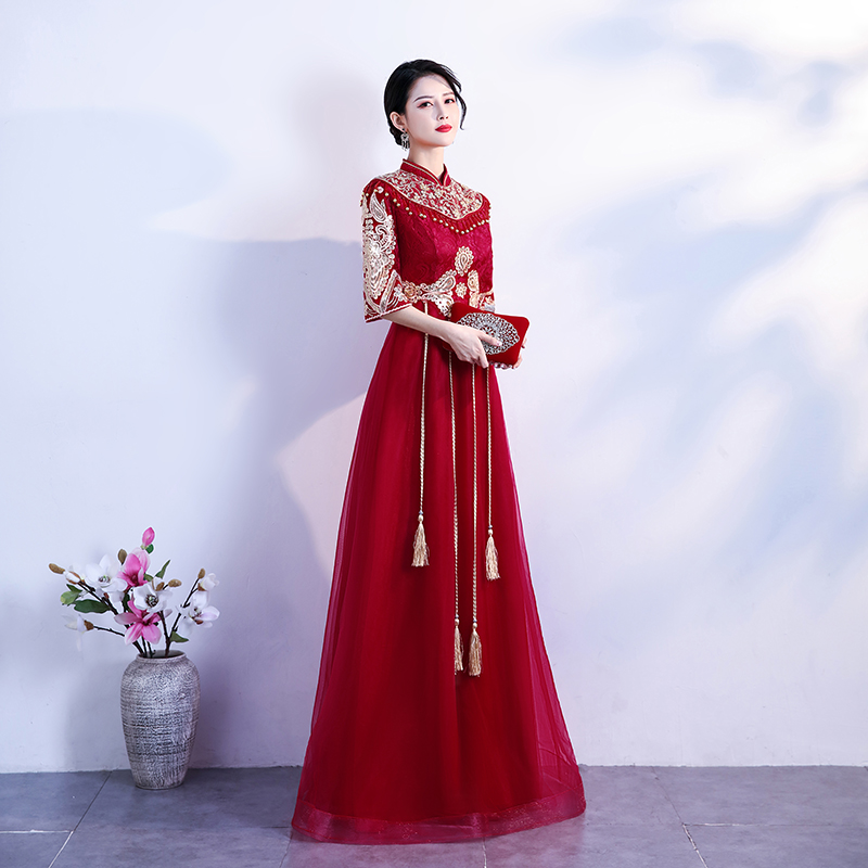 Bride to toast 2022 new high-end wedding wine red engagement back door banquet Chinese evening gown skirt dresses