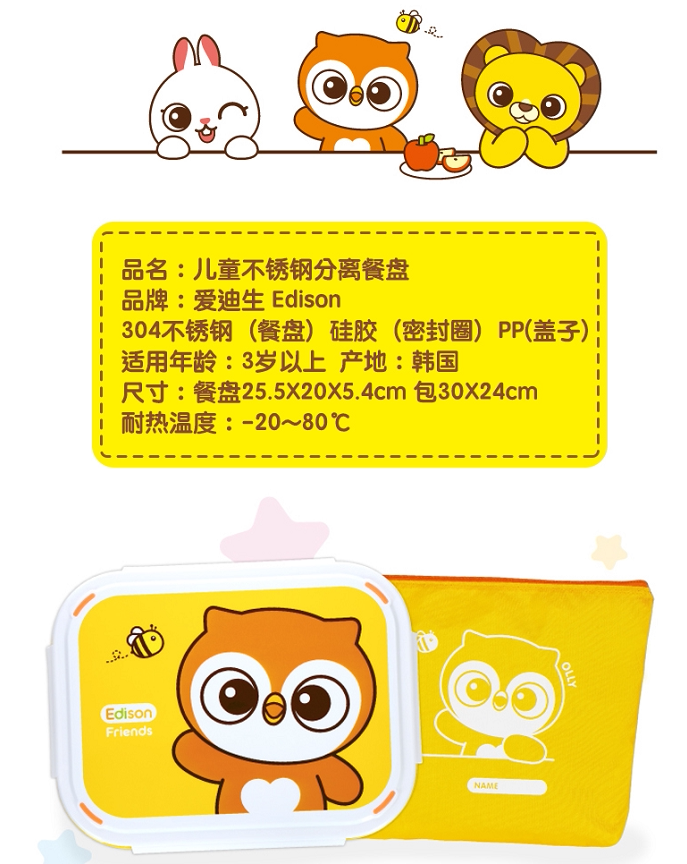 Korea Edison Edison Edison Children's Stainless Steel Sub-Dinner Lunch Box Home Anti-Fall Eating Cartoon Rice Bowl