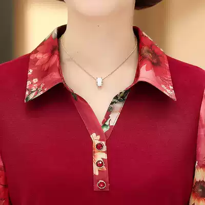Thousand silk deer mother autumn T-shirt long sleeve middle-aged women's coat base shirt spring and autumn middle-aged shirt summer clothes