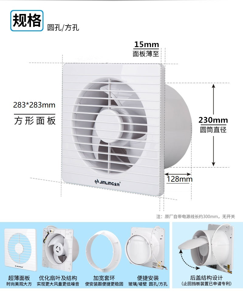 Golden antelope exhaust fan 4 6 8 10 inch B8 household silent ventilation cosmetic window glass round hole exhaust fan