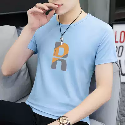 Modal short-sleeved t-shirt men's trend 2021 new summer men's solid color ice silk top half-sleeved round neck tide brand