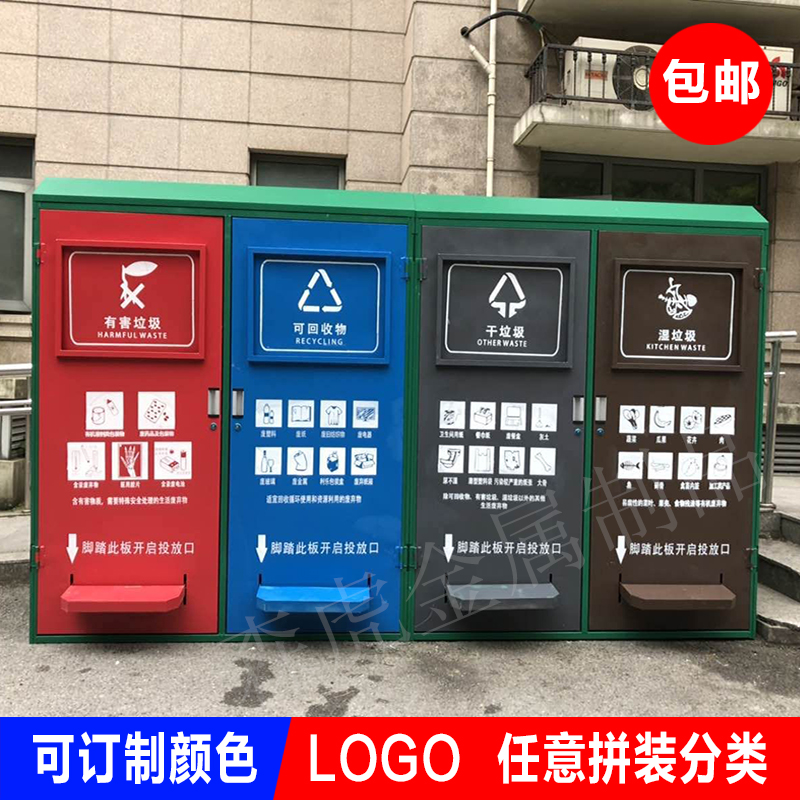 Intelligent garbage room outdoor sanitation large iron sheet metal foot-operated environmental protection recycling garbage sorting box room manufacturer