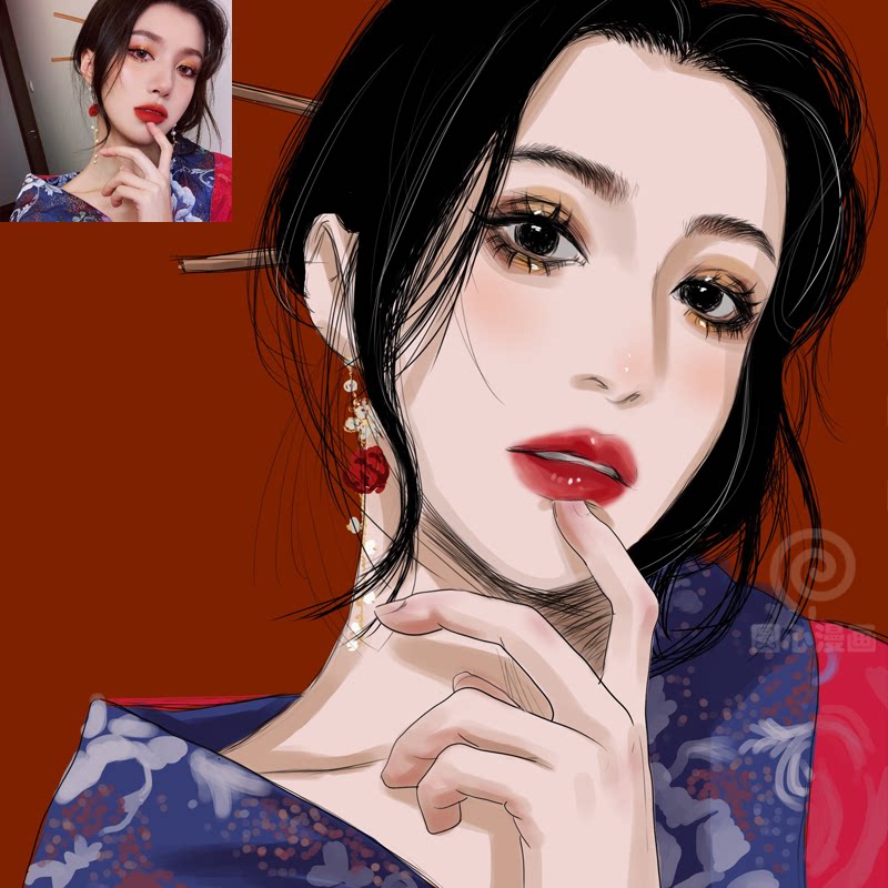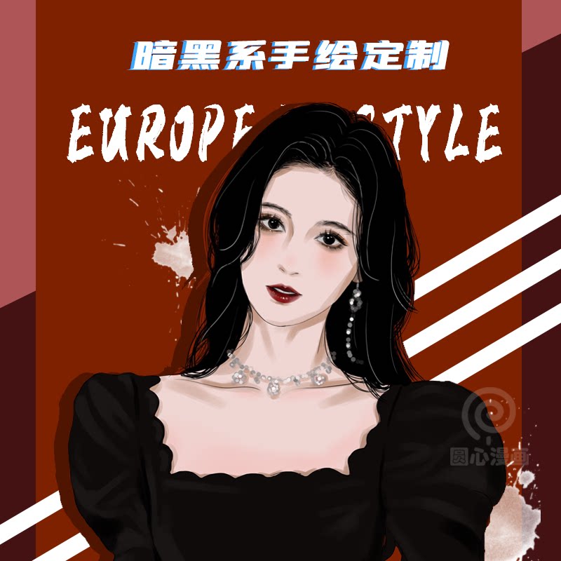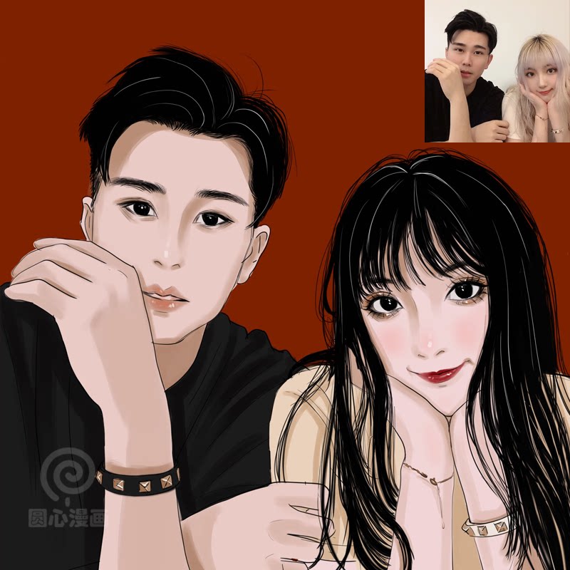 Hand-painted Avatar Couple Dark Black Wind Sketching Wedding Gifts Comic Cartoon Cartoon Cartoon Live Photos Transfer Hand-drawn Custom