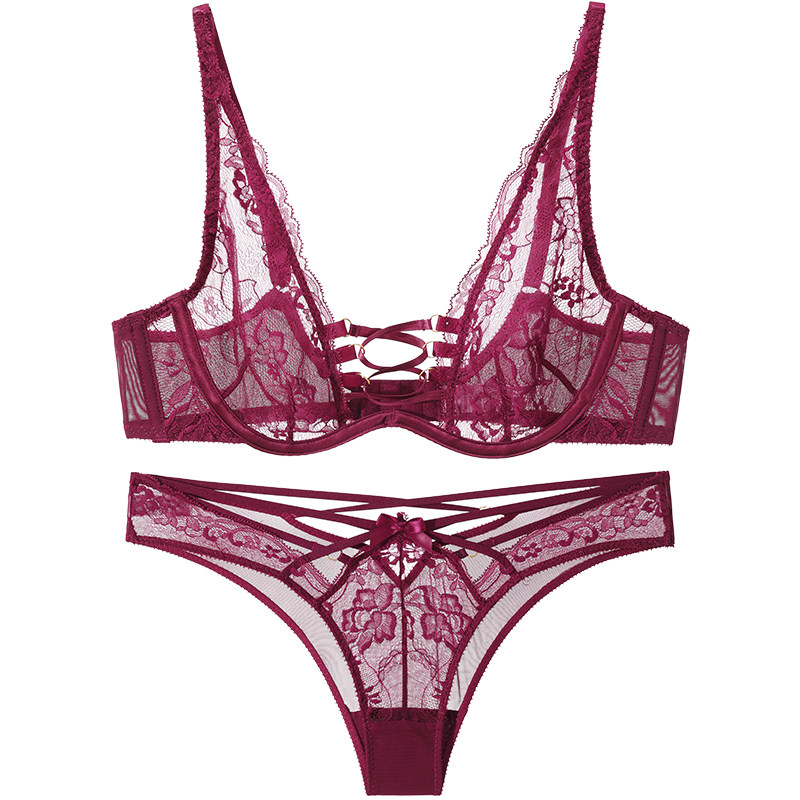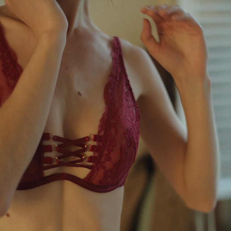 Madame Song Bra Sexy Lace Lingerie Woman No Steel Ring Big Chest Execs Small Underwear Suit Teasing Perspective Ultrathin