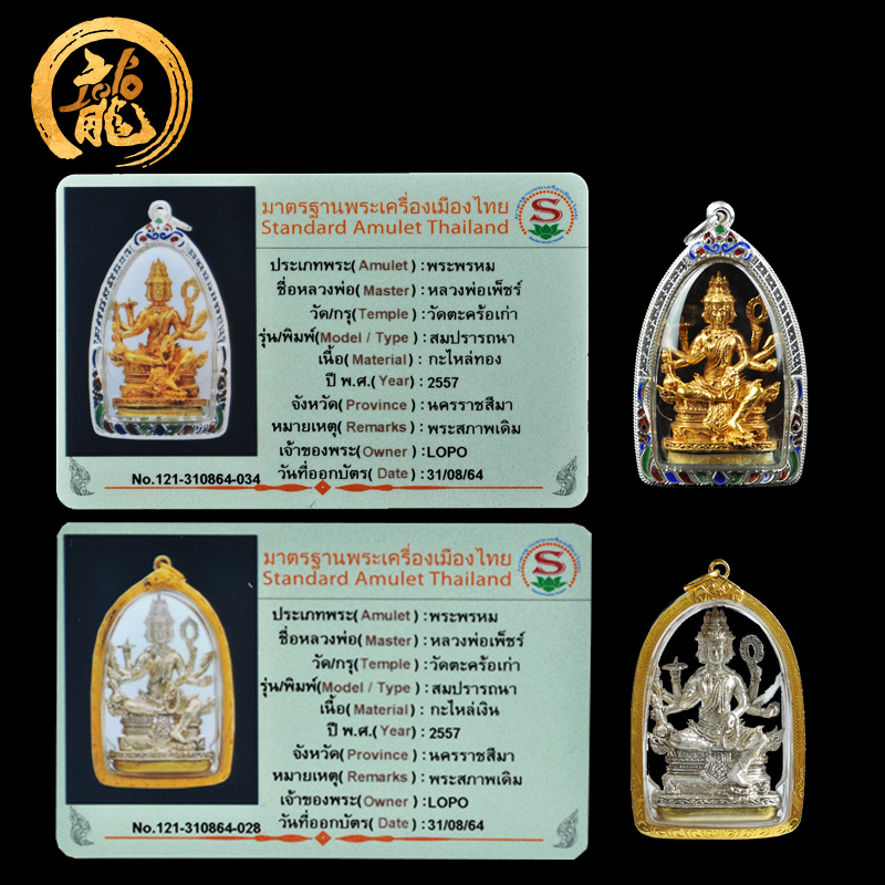 Taiji Treasure Thai Buddha Plaque Lotus Bell Four-Sided Buddha Dragon Po Chan Nam 2557 Gold Shell Silver Shell
