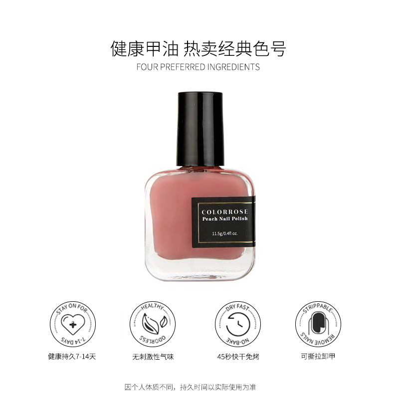 colorrose Peach frozen milk nail polish Bake-free quick-drying long-lasting tearable nail polish Non-toxic and tasteless pregnant Elm deer miss candy Russian pastoral cat hm nail polish