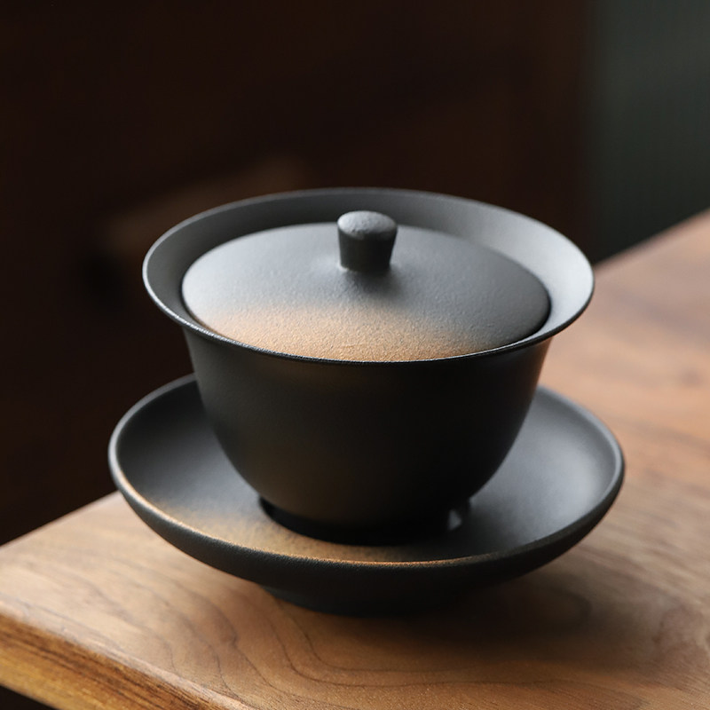 Qi Friend Ceramic Cover Bowl Retro Home Big Number Tea Bowl Day Style Kiln Change Three Talents Bowl Kongfu Tea With Toast Tea Bowl