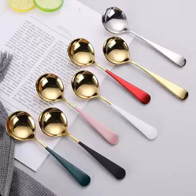 Silver platinum Green Gold Pink Gold red gold Blue Star Black Gold rose gold gold Korean spoon single pure steel round spoon