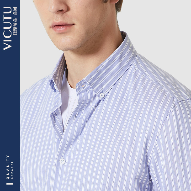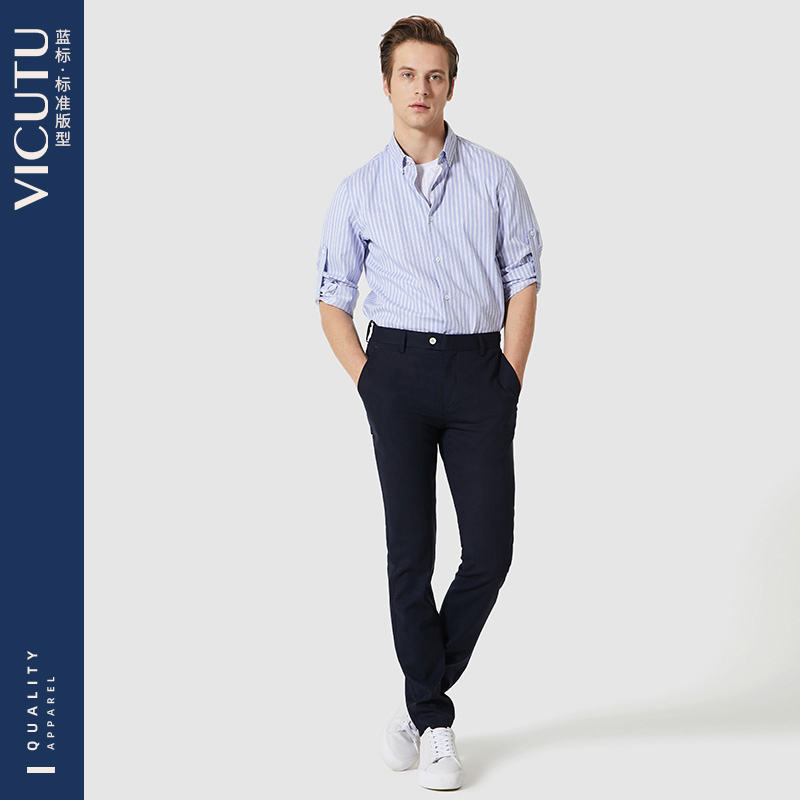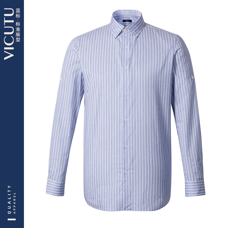 VICUTU Victory men's long-sleeved shirt fashion all-match autumn new personality vertical striped shirt men