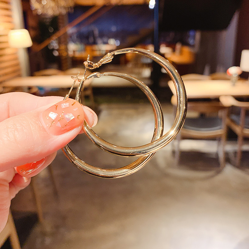 Earring female big hoop earring super fairy s925 silver needle temperament all-match hipster exaggerated fashion simple nightclub daily