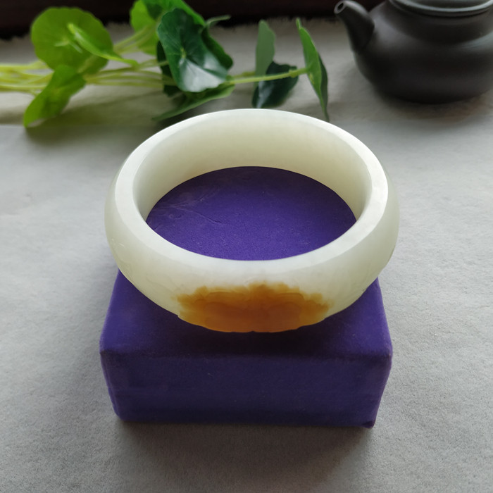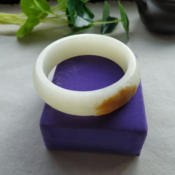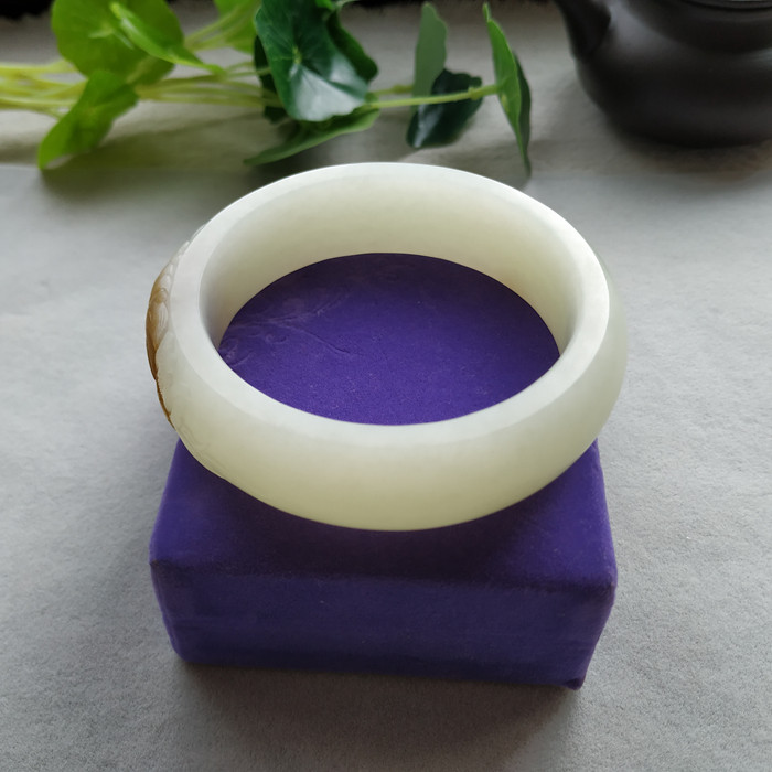 Hetian jade mountain material brown sugar white peony bracelet 59mm