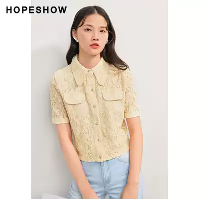 Red Sleeve hopeshow Short Coat Summer New Women's Single Breasted Chick Lace Temperament Short Sleeve Top